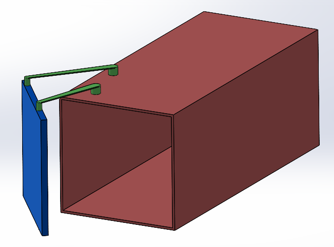 Firstly, 2D linkage mechanism model was constructed in Math Illustration. Firstly the top view picture of the container with the door on was pasted onto the software and its transparency was set at 80%. Then initial, intermediate, and final desired position of the door was indicated. By drawing the corresponding bisectors, the length and coordinates of the linkages were determined.